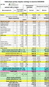 Wchodzą natomiast do ogólnej sumy kosztów bezpośrednich, co służy do wyliczenia zysku brutto. Zaczynamy zatem od rzepaku ozimego i pszenicy ozimej, przyjmując ceny skupu na poziomie czerwca 2025.